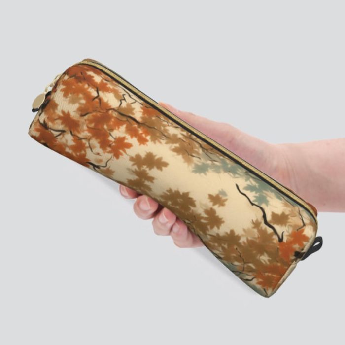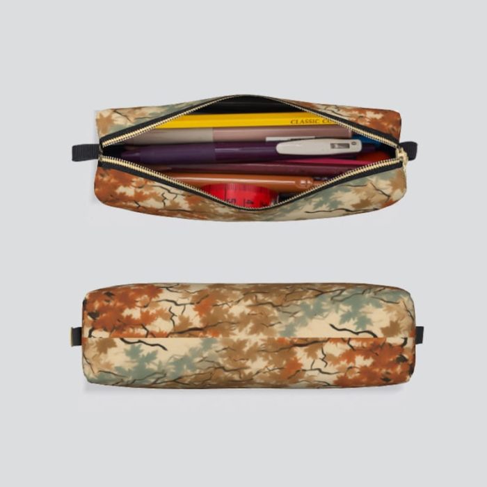 Giữ gọn bút thước mỗi ngày với hộp bút da PU họa tiết lá phong – dung tích lớn, bền đẹp, dễ lau chùi, nổi bật cảm hứng mùa thu.