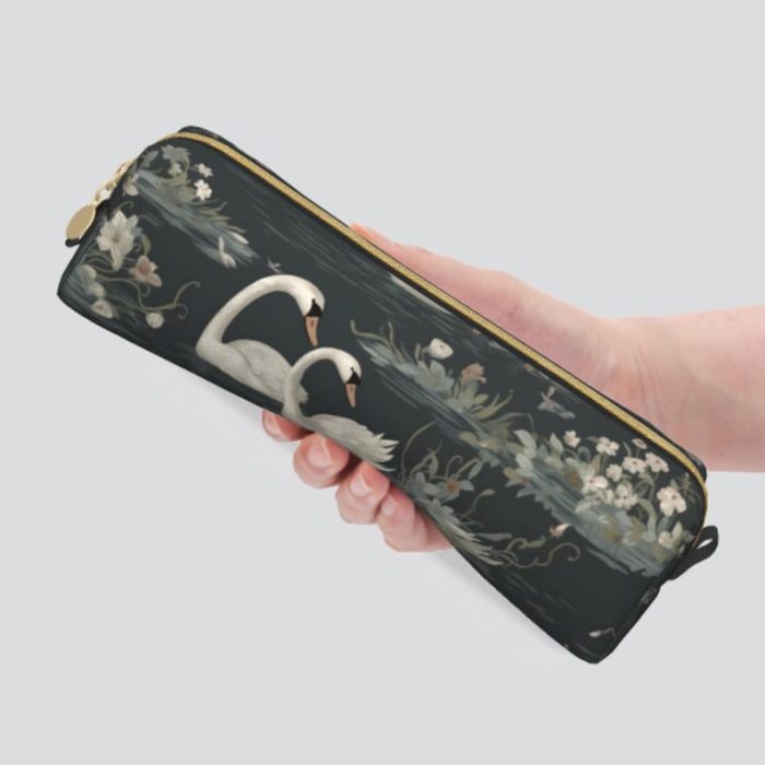 Tối ưu góc học tập với hộp bút da PU họa tiết thiên nga – sang trọng, bền đẹp, dễ lau chùi, giữ bút thước gọn gàng mỗi ngày.