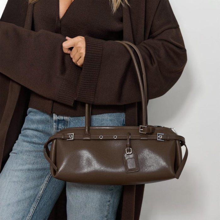 Home Túi xách nữ Túi da Túi baguette đeo vai da bò nữ Y2K 32×13×10 cm nâu