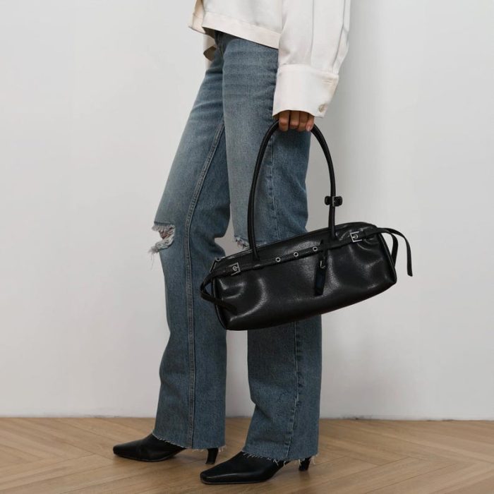 Túi đeo vai da bò nữ Y2K dáng baguette nhỏ gọn, dễ phối đồ và giữ form tốt cho nhu cầu đi làm, dạo phố hay dự tiệc. Chất liệu da bò tách lớp bền, bề mặt bóng nhẹ cùng phụ kiện kim loại màu bạc tạo điểm nhấn hiện đại. Kích thước 32×13×10 cm vừa vặn điện thoại, ví dài và đồ cá nhân cần thiết. Made in Vietnam.