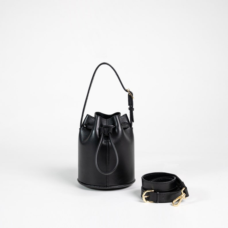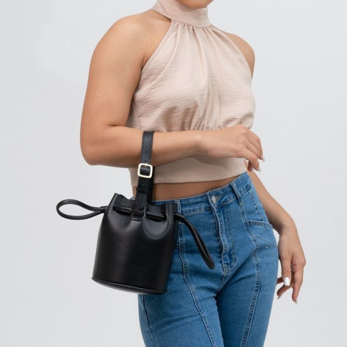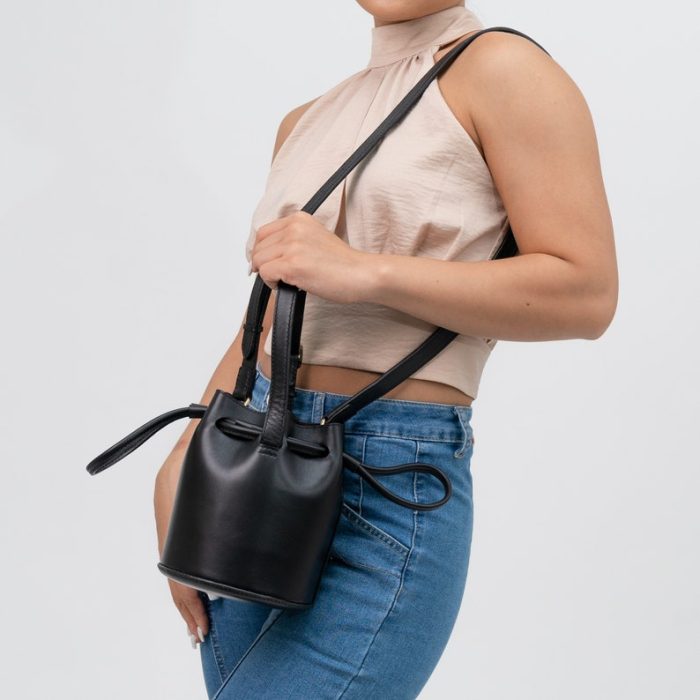 Túi Xách Nữ Dạng Bucket Da Bò Màu Đen