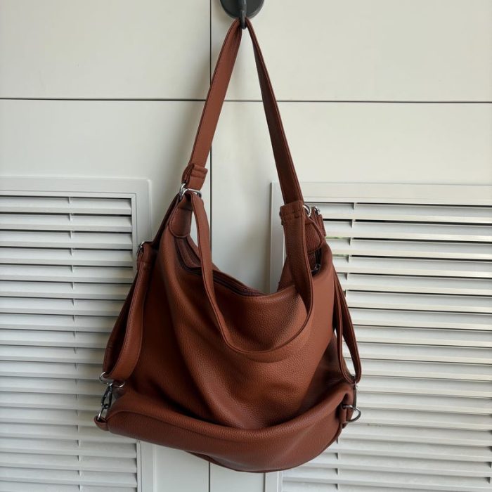 Túi da nâu Y2K đa năng 34x30x13 cm đeo vai/chéo/balo