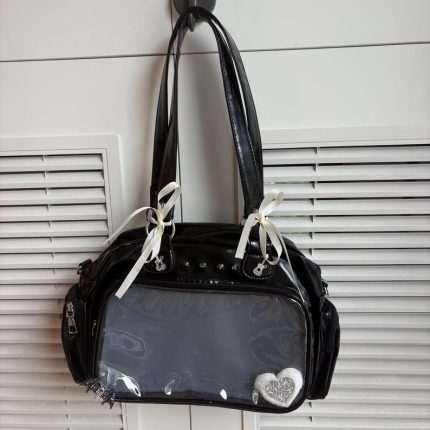 Túi ita đeo vai da PU cửa sổ PVC Y2K 27×21×11 cm đen 680,000₫