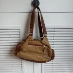 Túi xô da PU & canvas nâu 20x9x22 cm dây rút boho đeo chéo
