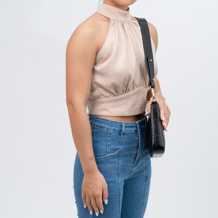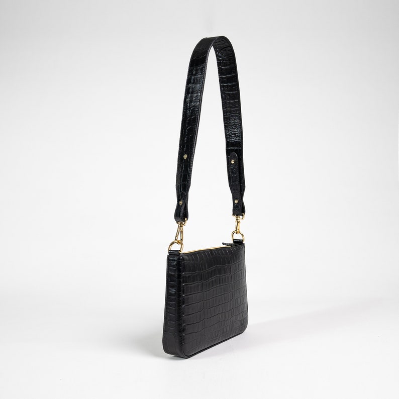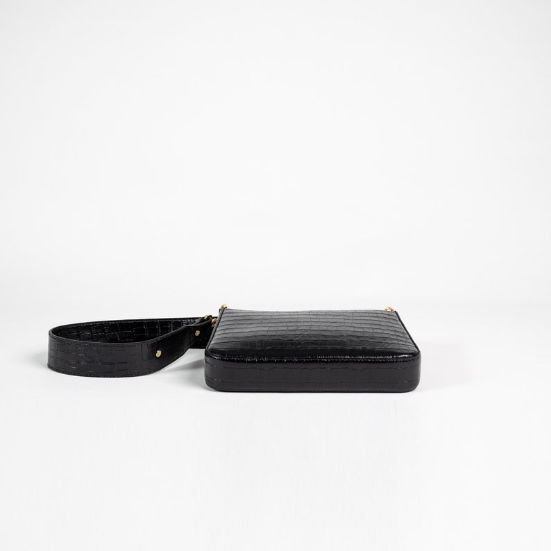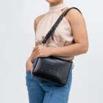Túi Đeo Chéo Nữ Da Bò Vân Cá Sấu Đen