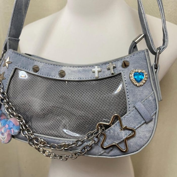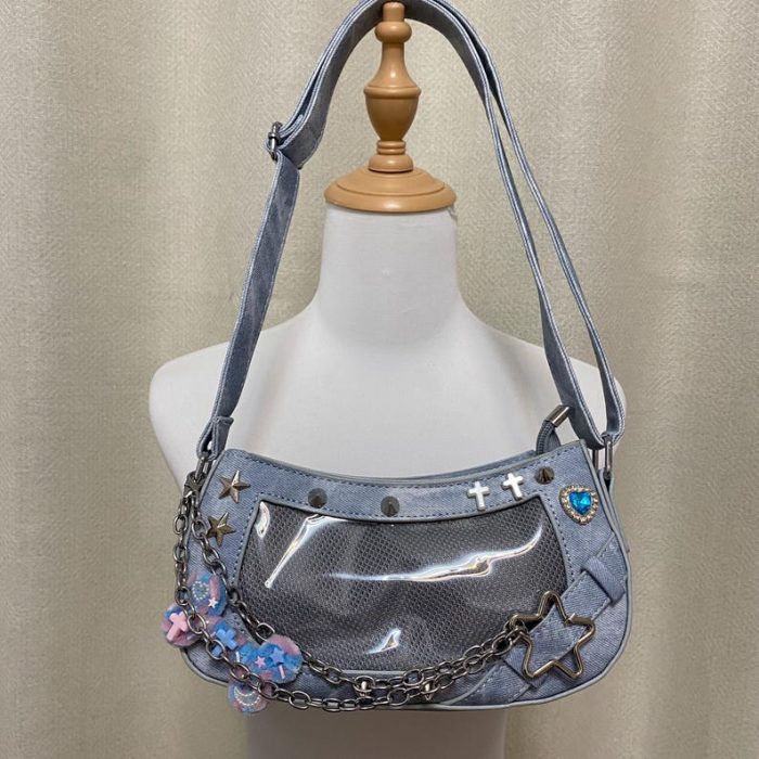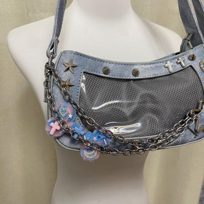 Túi ita denim cửa sổ 23.5x13x7 cm, phong cách Y2K