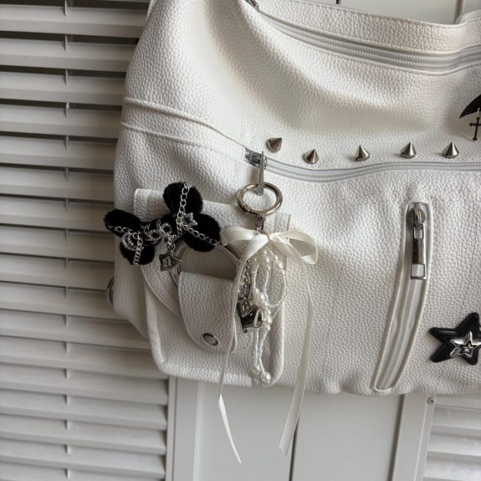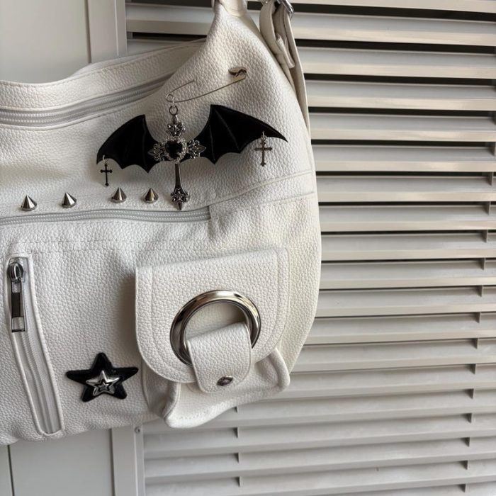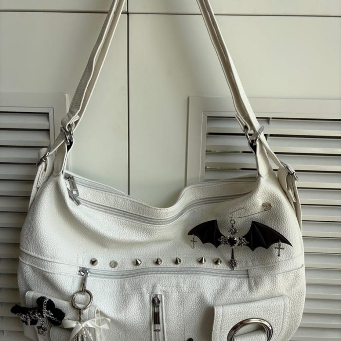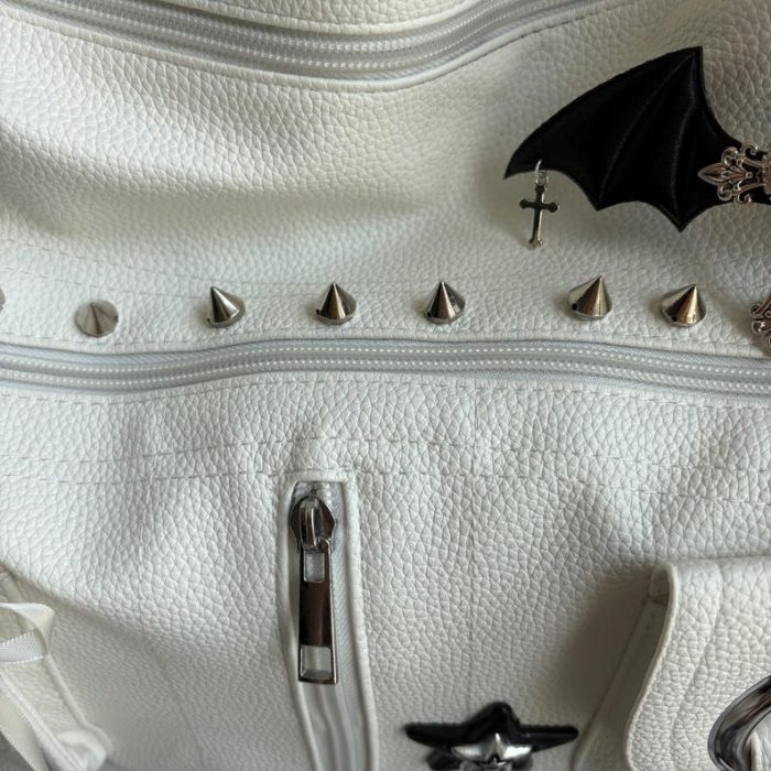 Túi xách dáng tote cỡ lớn với thiết kế cá tính, mang phong cách Gothic và Y2K độc đáo. Sản phẩm này không chỉ có vẻ ngoài ấn tượng mà còn có dung tích lớn, phù hợp cho những chuyến đi du lịch, đi học hay đi làm, giúp bạn mang theo mọi vật dụng cần thiết một cách tiện lợi.