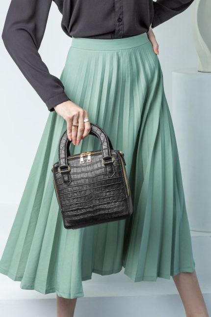 Túi Xách Hộp Da Bò Vân Cá Sấu Màu Đen