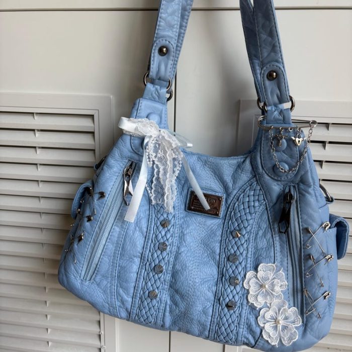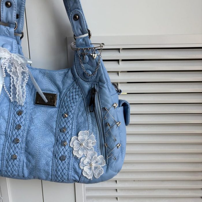 Túi xách dáng tote cỡ lớn với thiết kế phong cách Y2K và Punk, kết hợp giữa sự nữ tính và cá tính. Đây là phụ kiện lý tưởng để đi học, đi làm, hay dạo phố, mang đến vẻ ngoài sành điệu và tiện dụng.