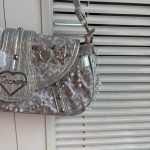 Sản phẩm được làm thủ công tỉ mỉ, kết hợp giữa da tổng hợp bền đẹp và vải polyester mềm mại. Túi có kích thước 33 x 17 x 11 cm, đủ để đựng các vật dụng cần thiết như ví, điện thoại, son môi. Thiết kế nổi bật với các chi tiết đính ngọc trai, họa tiết bướm, ngôi sao và bông hoa, tạo nên vẻ ngoài độc đáo, ấn tượng. Túi đi kèm cả quai đeo vai và quai đeo chéo có thể điều chỉnh linh hoạt.