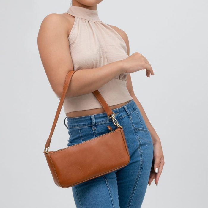 Sản phẩm được làm từ da thuộc thảo mộc mềm mại, cao cấp. Túi có kích thước 28 x 13 x 4 cm, đủ rộng rãi để đựng các vật dụng cần thiết như điện thoại, ví, chìa khóa và đồ trang điểm. Dây đeo có thể tháo rời, cho phép bạn sử dụng túi như một chiếc túi đeo vai hoặc ví cầm tay (clutch). Màu nâu lạc đà trang nhã, mang lại vẻ ngoài thanh lịch và tinh tế.