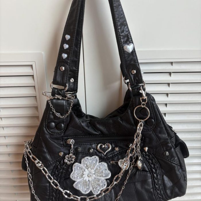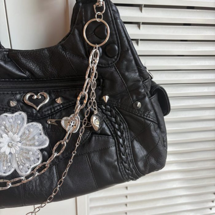 Túi Xách Nữ Da Đen Phong Cách Punk Rock 850,000₫