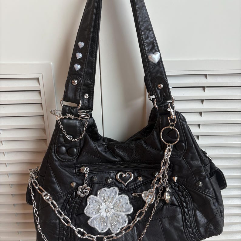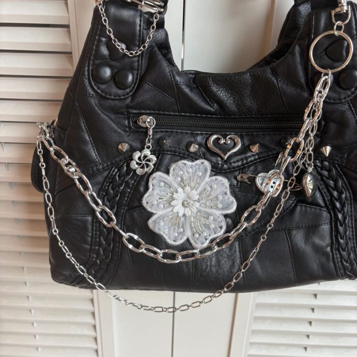 Túi xách handmade mang phong cách Punk và Y2K, là phụ kiện độc đáo để bạn thể hiện cá tính mạnh mẽ. Chiếc túi này phù hợp để đi chơi, dự tiệc hay dạo phố, thu hút mọi ánh nhìn.