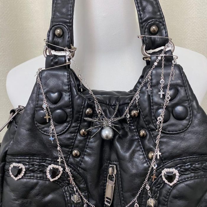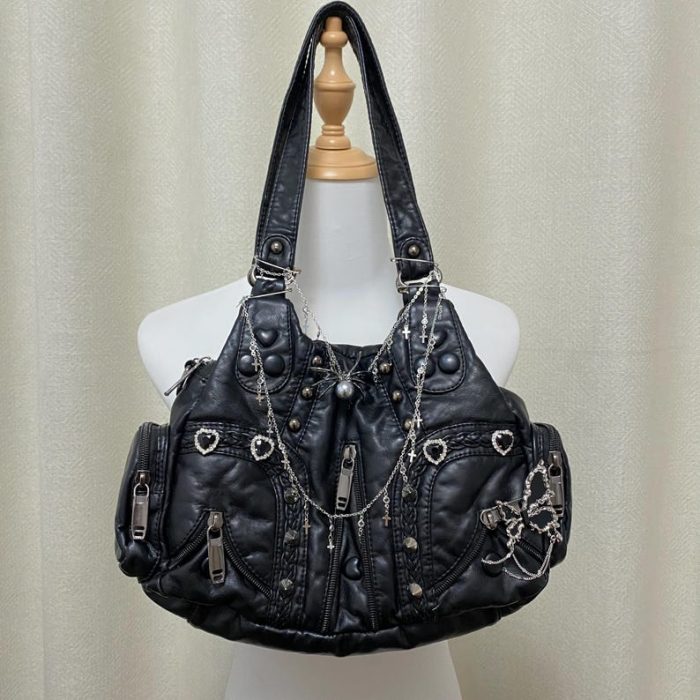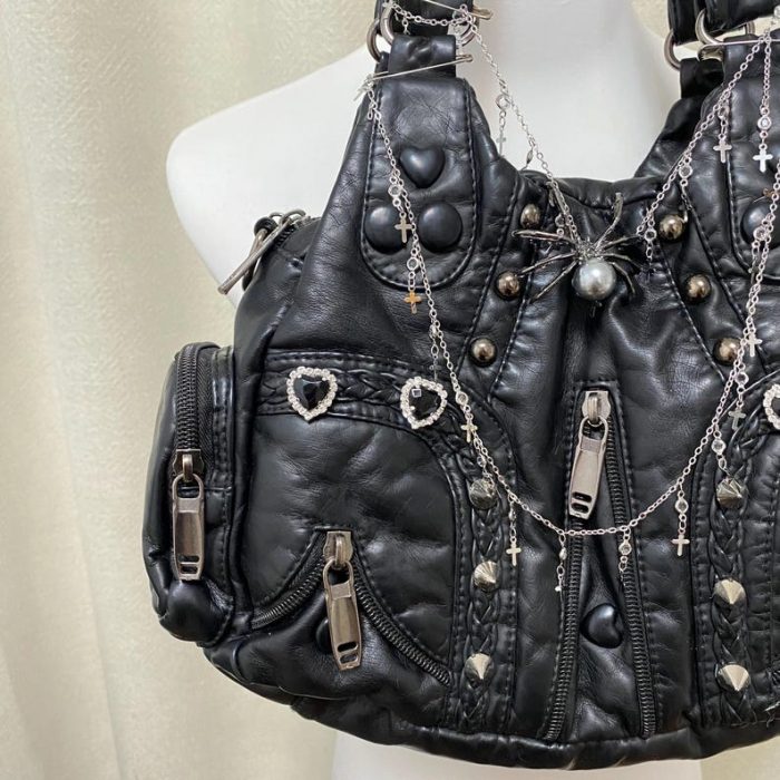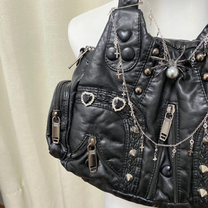 Túi Xách Nữ Da Đen Phong Cách Punk Rock