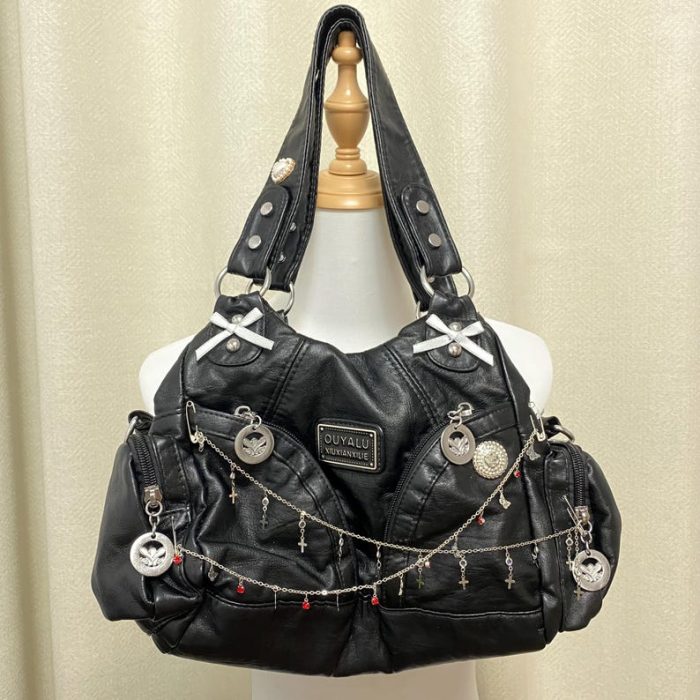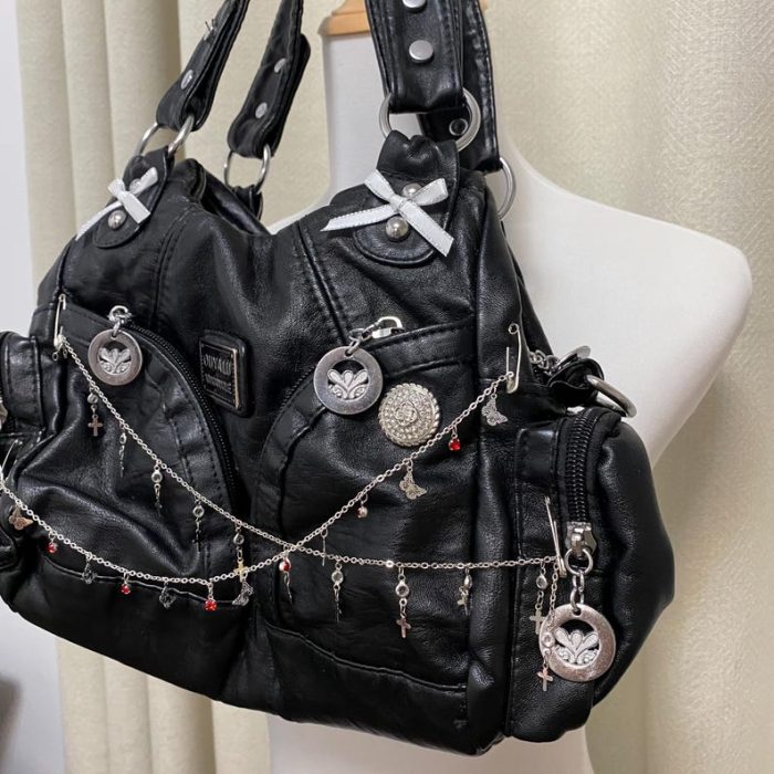Túi xách handmade mang phong cách Punk và Y2K độc đáo, là phụ kiện không thể thiếu để tạo nên vẻ ngoài cá tính và mạnh mẽ. Chiếc túi này phù hợp để đi chơi, đi học hay dạo phố, thể hiện gu thời trang riêng biệt của bạn.