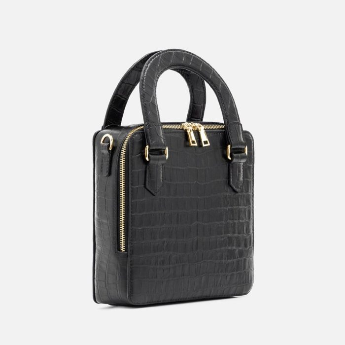 Túi Xách Hộp Da Bò Vân Cá Sấu Màu Đen