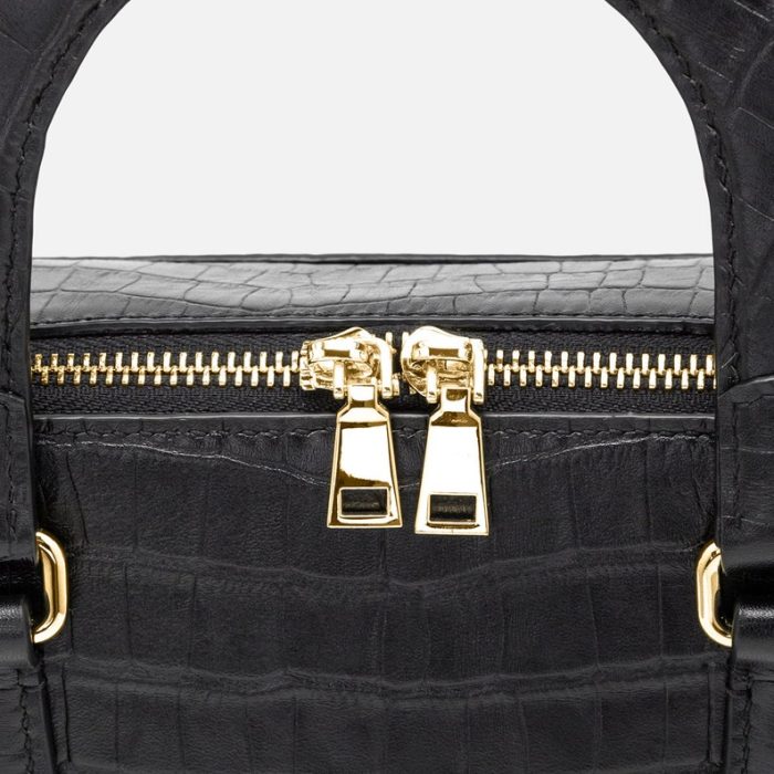 Home Túi xách nữ Túi da Túi Xách Hộp Da Bò Vân Cá Sấu Màu Đen