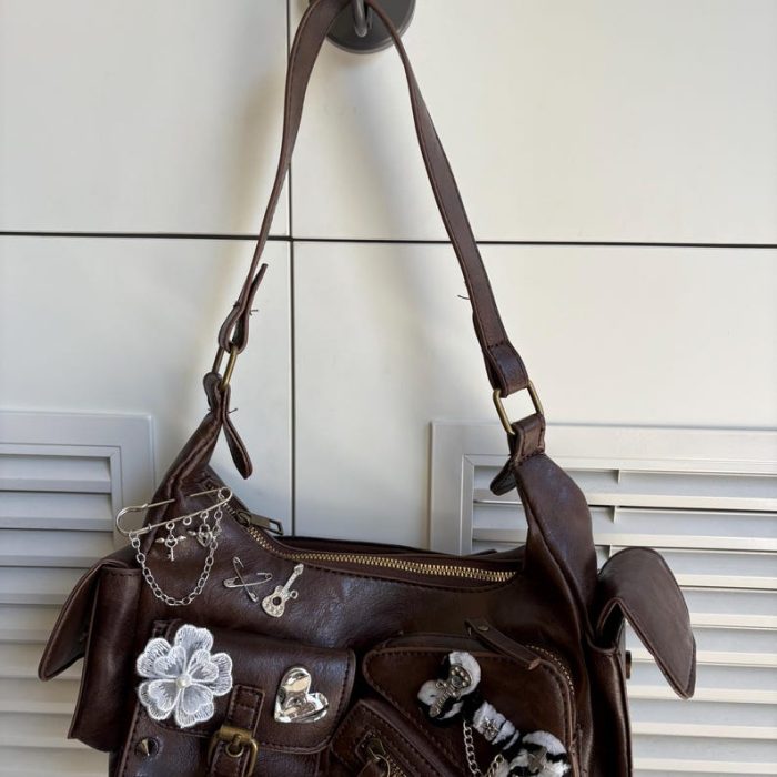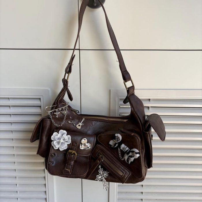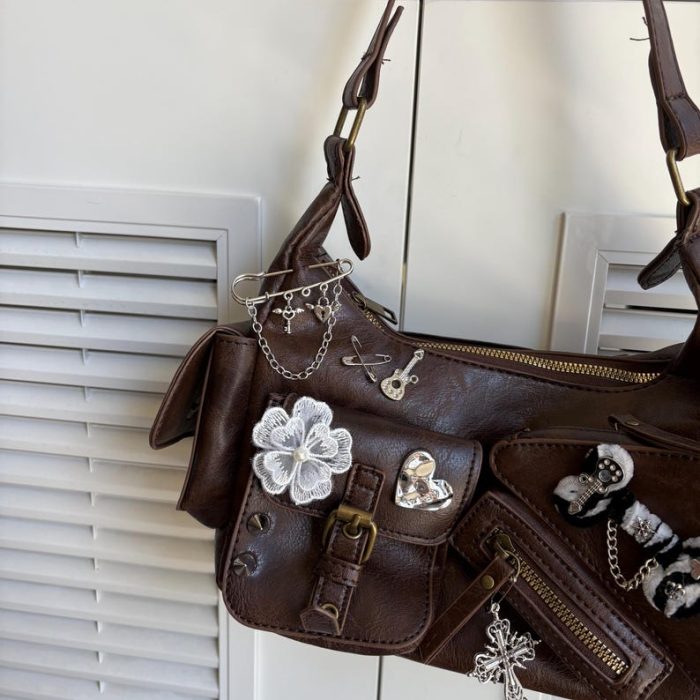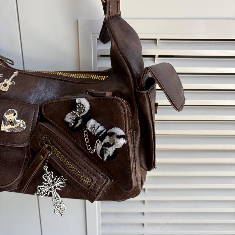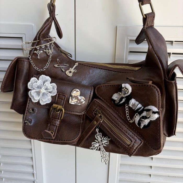 Túi xách kẹp nách handmade mang phong cách Punk và Y2K, là phụ kiện độc đáo để bạn thể hiện cá tính mạnh mẽ, nổi bật. Chiếc túi này phù hợp để đi chơi, dự tiệc hay dạo phố, thu hút mọi ánh nhìn.