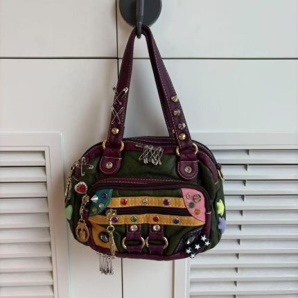 Túi xách vải denim handmade mang phong cách Y2K và Punk độc đáo sẽ là phụ kiện hoàn hảo để bạn thể hiện cá tính riêng. Chiếc túi này phù hợp để đi chơi, dạo phố, hay dự tiệc, tạo nên vẻ ngoài sành điệu và nổi bật.