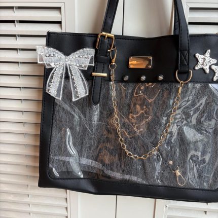 Túi tote ita cửa sổ PVC Y2K 29×23×8 cm đen