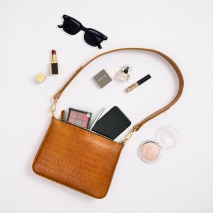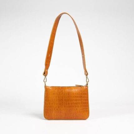 Túi Đeo Chéo Nữ Da Bò Vân Cá Sấu Nâu
