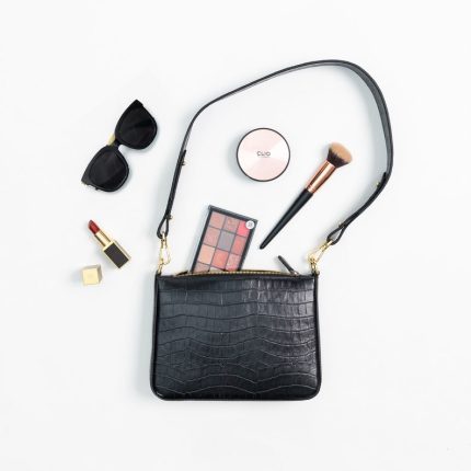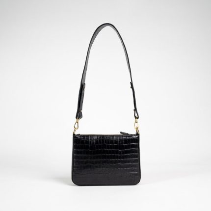 Túi Đeo Chéo Nữ Da Bò Vân Cá Sấu Đen